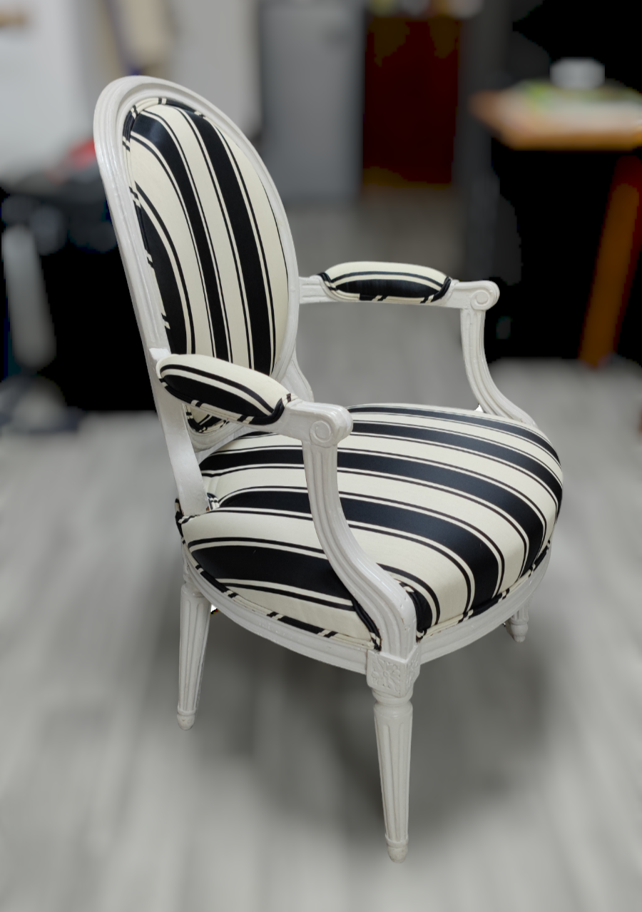 Je restaure vos sièges de façon traditionnelle (sanglage, ressorts, crin) ou contemporaine (mousses de haute qualité).